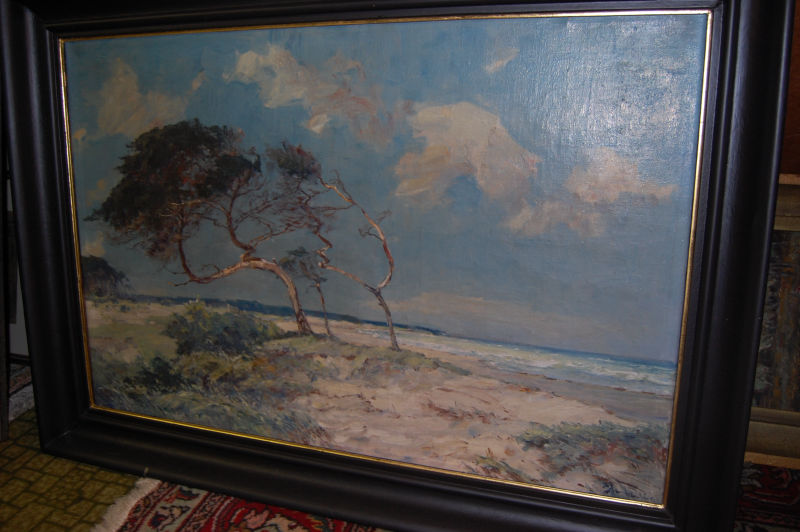 A pair of early 20th century signed paintings of sea shore, oil on canvas, Ed Kesting including frame, Size (including frame): 41.7 in. (106 cm) x 29.5 in. (75 cm)