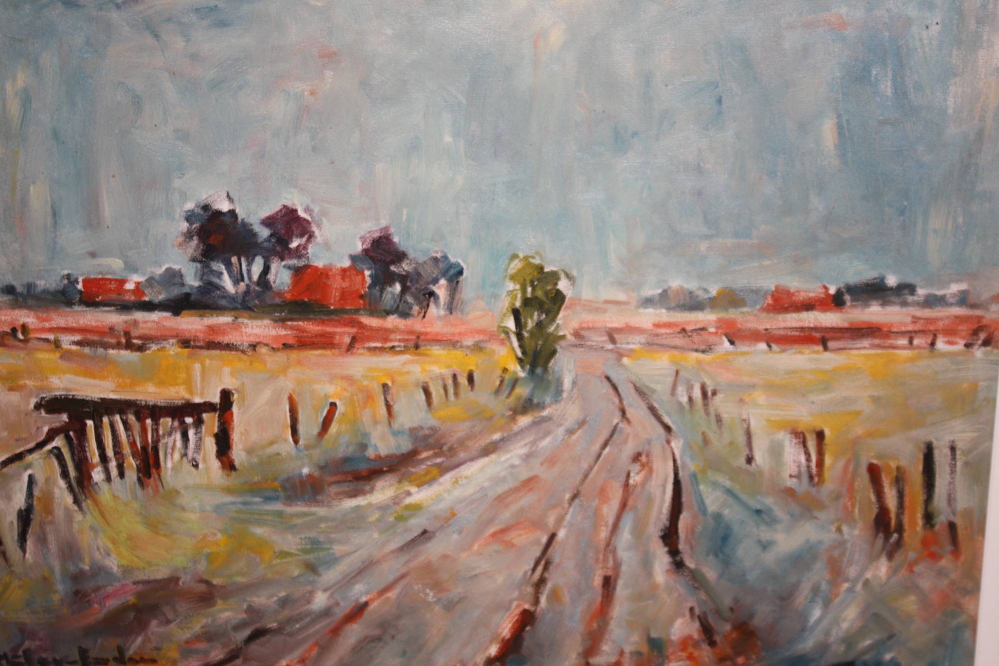 A Mid-20th century impressionist landscape oil on wood painting by Johann Mueller-Emden (1921-2010), Size (with frame): 38.19'' (97 cm) x 34.25'' (87 cm)