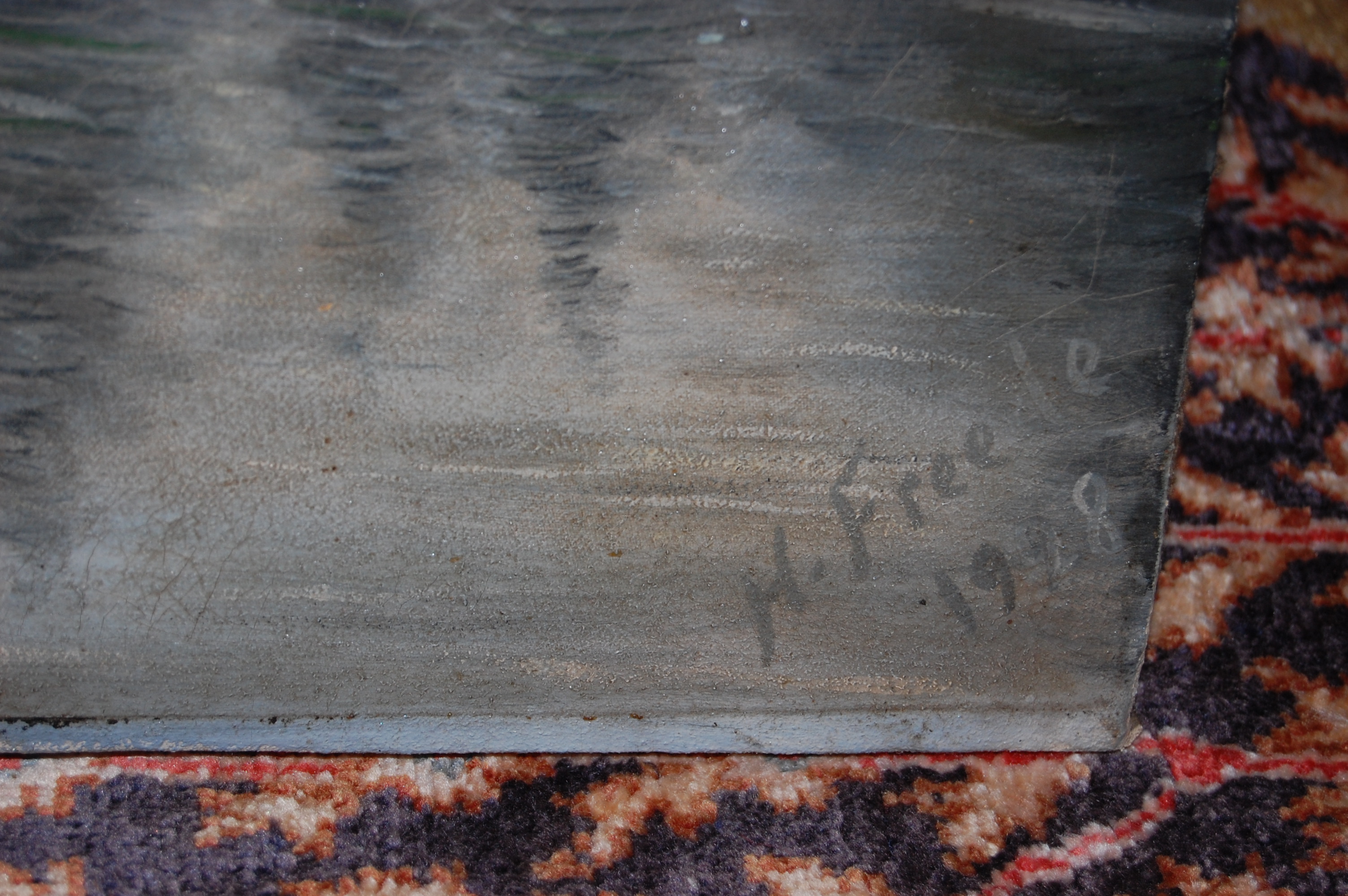 A large oil on canvas painting depicting a north german landscape, signed and dated "H. Freede 1928", Size (without frame): 39 in (100 cm) x 27.5 in (70 cm)