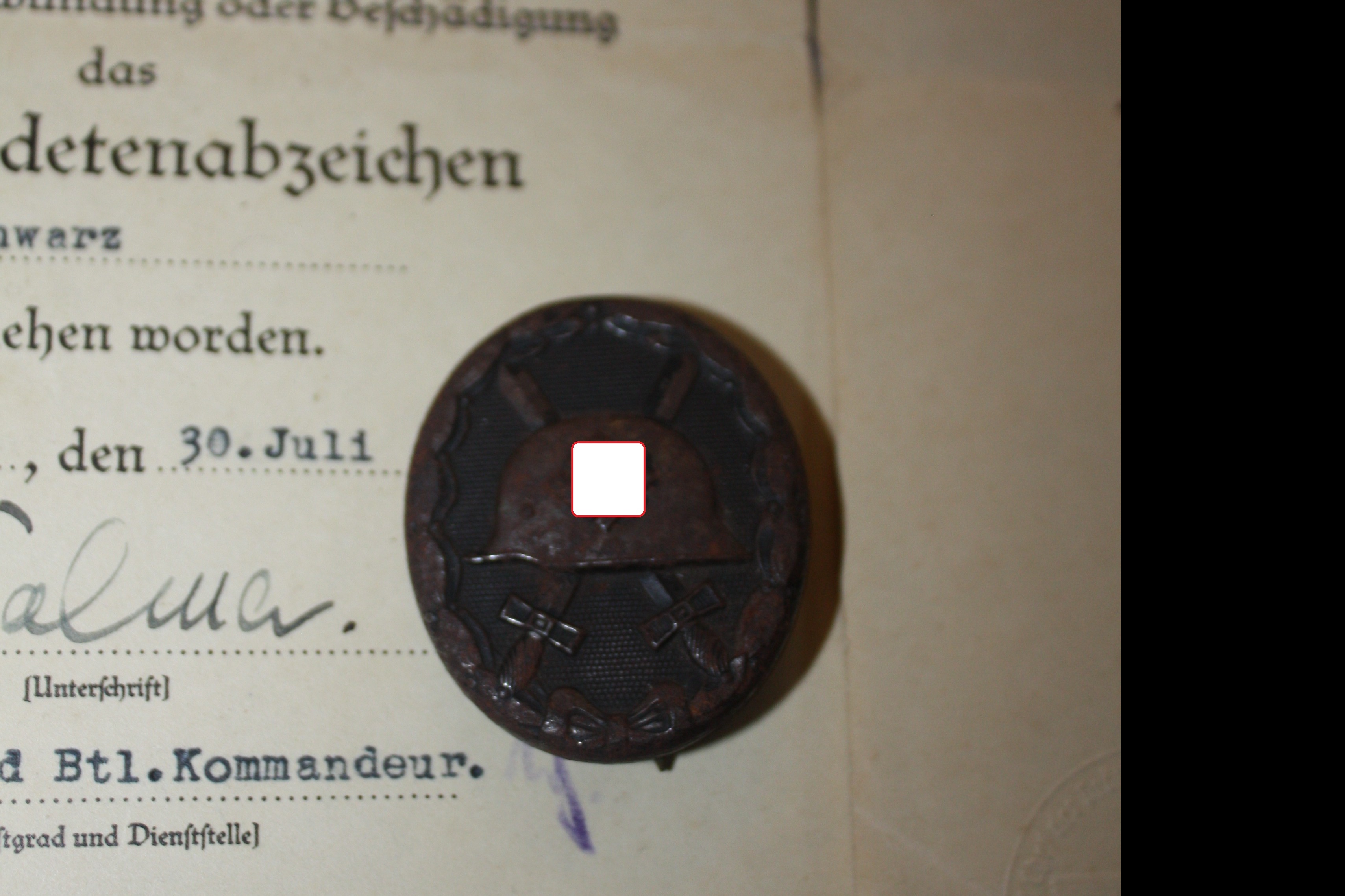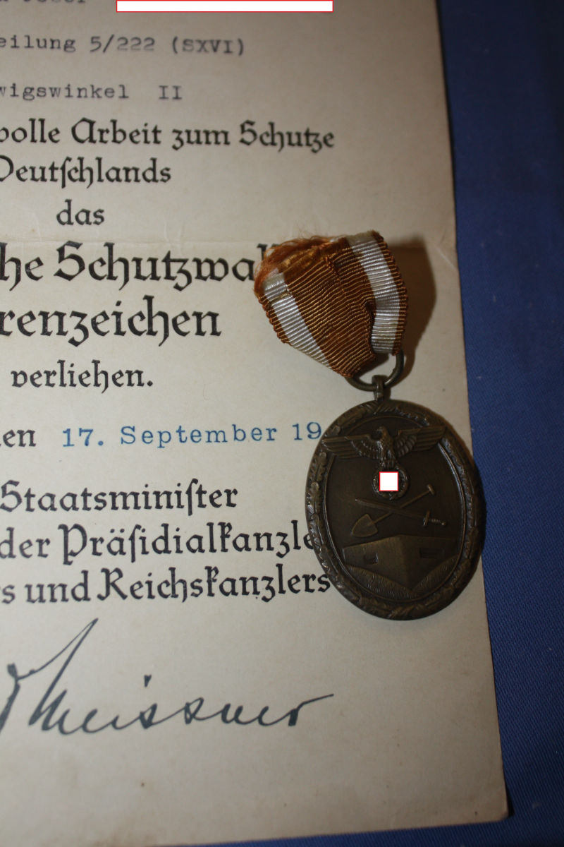 3 WW2 certificates with badges Schutzwall-Ehrenzeichen, Verwundetenabzeichen