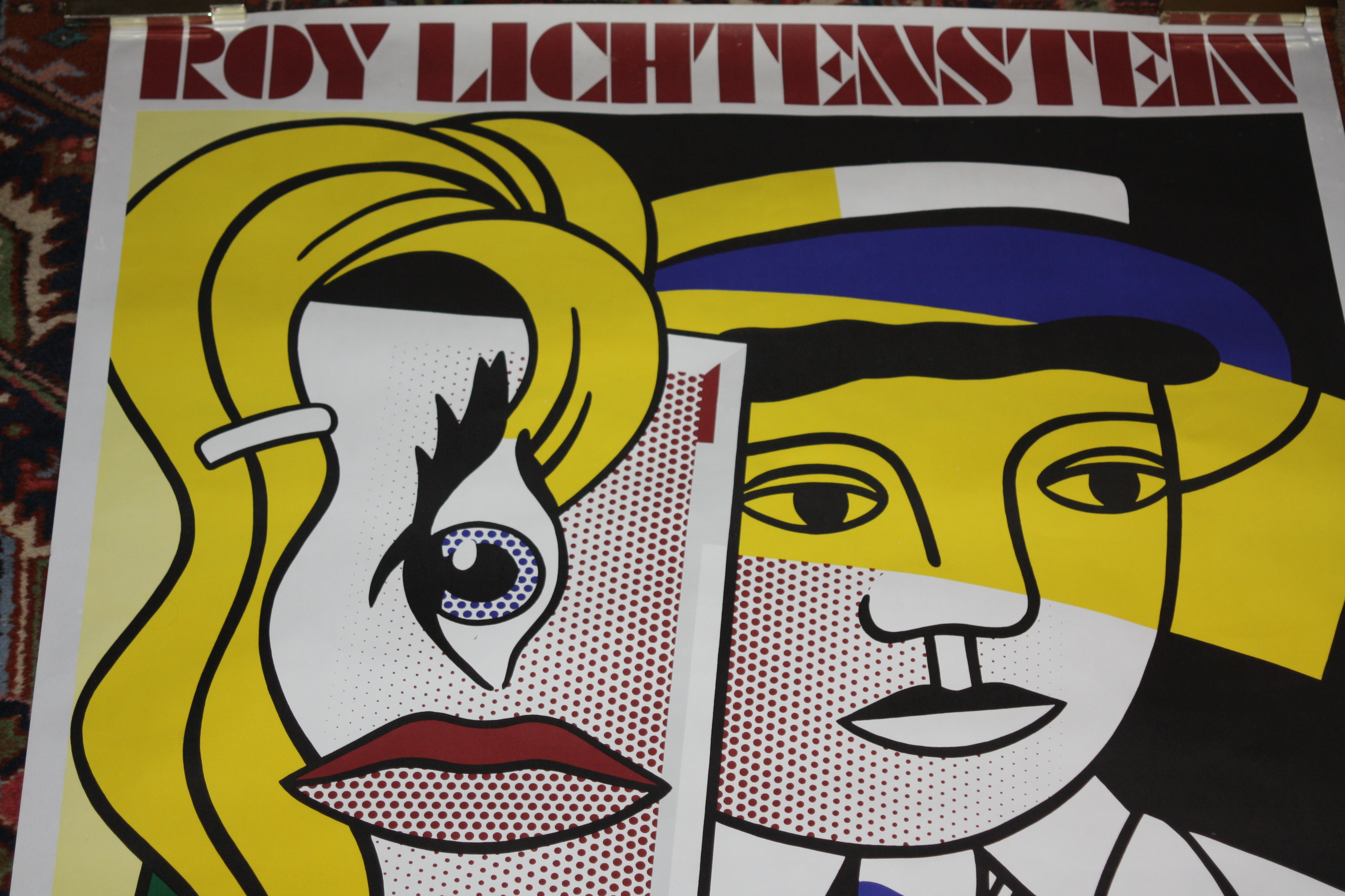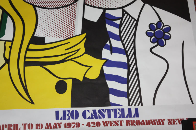 An Original Roy Lichtenstein Poster, 'Leo Castelli, 28 April to 19 May 1979 420 West Broadway New York', transport roll signed "Study for 'Stepping-out'" "Roy Lichtenstein '84", Width: 90 cm, Height: 120 cm
